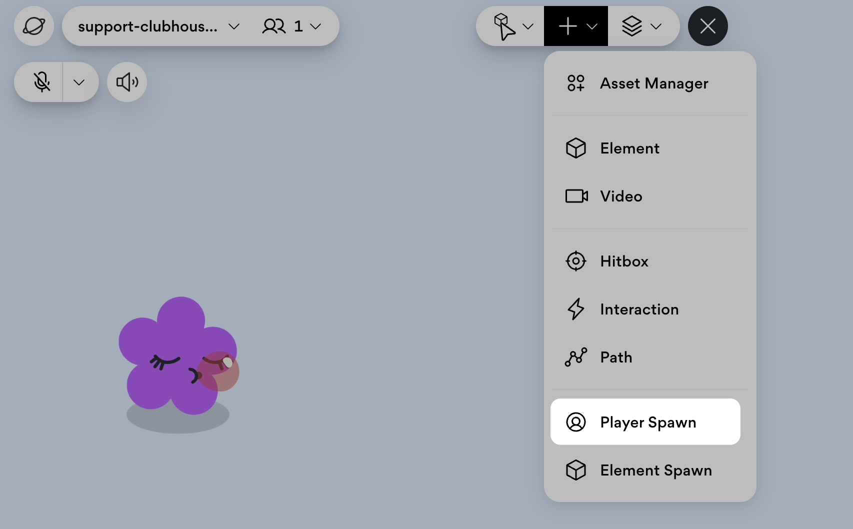 This will prompt you to click where you would like to place the spawn point. Selecting the spawn point will bring up the player spawn tool bar.&#x20;
