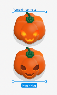 Notice that each of our pumpkin images are placed in frames of the exact same size (258 x 550). Next, we'll group the two frames together, taking care that the frames are aligned, and then export as one image.