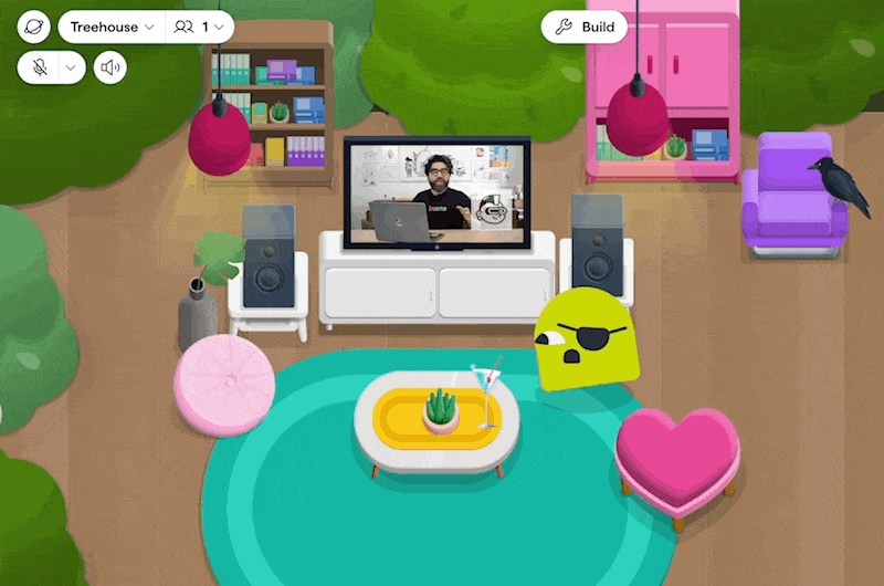 It’s possible to add a Youtube video (or Youtube livestream!) into a room by going to **Build Menu > Elements > Video**. Builders can alter the floor placement of the video as well as the z-index, like any other element.&#x20;