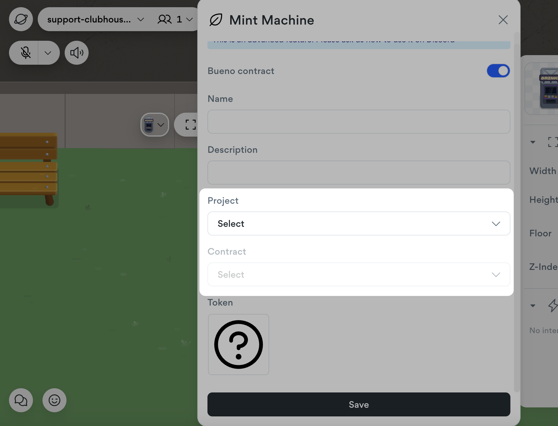 First, select the object that you would like to turn into a mint machine. Then, navigate to **Interactions > Abilities > Mint Machine**.