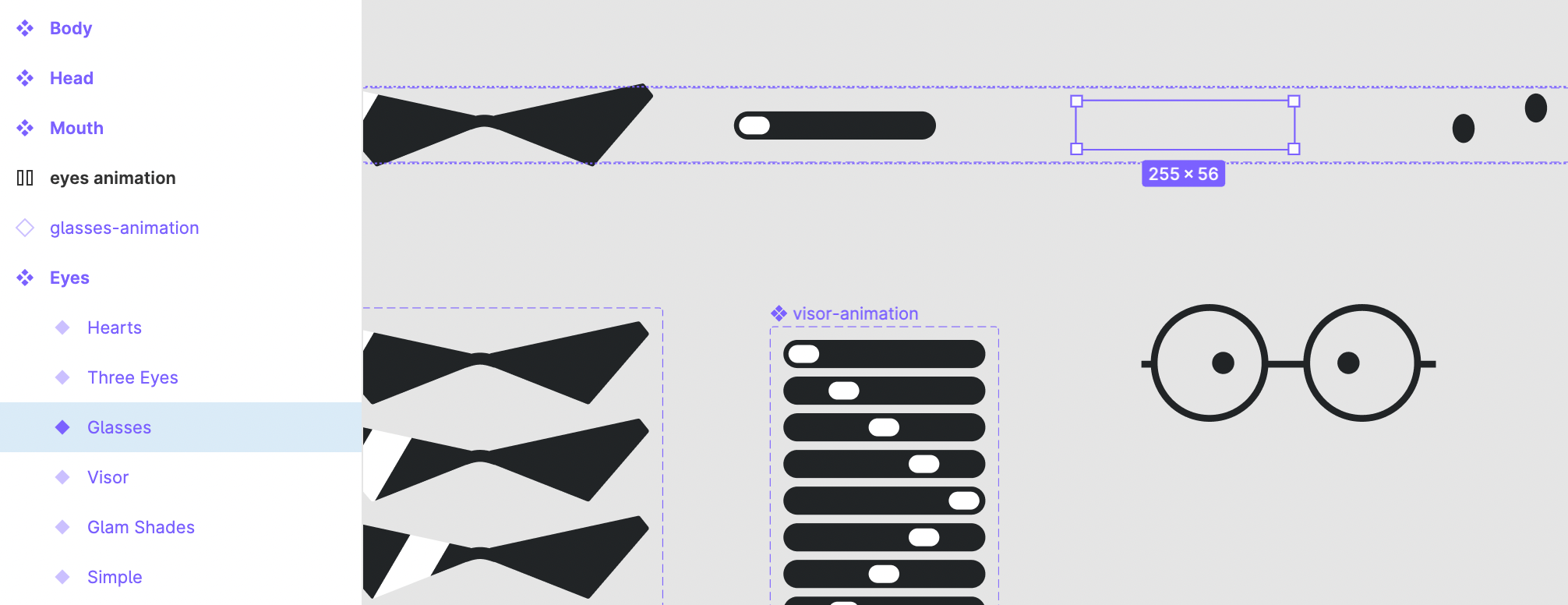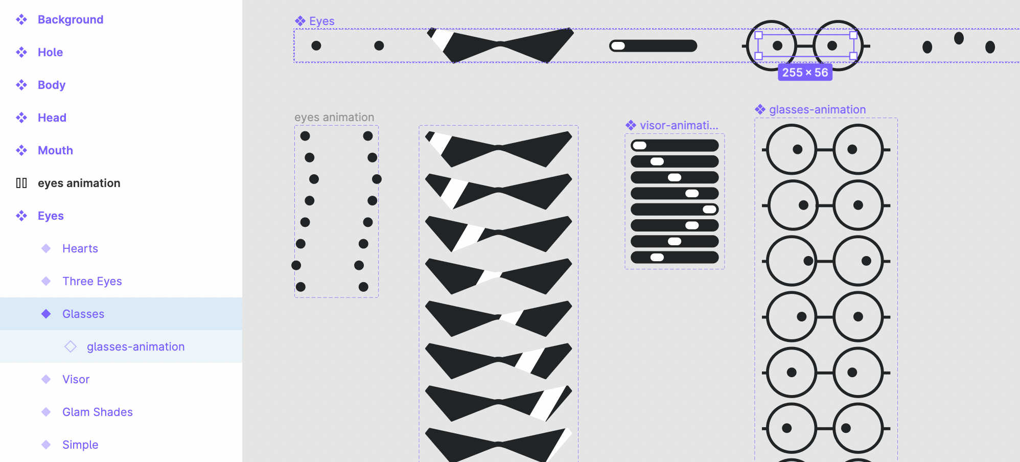 For example, if you want to animate one of your eye variants, you’ll need to nest a component with variants within that eye variant.