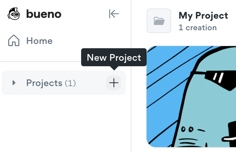 Your project dashboard houses your collections, forms, drops, and Buenoverse rooms. When you first sign in to Bueno, a demo project will be automatically created for you. To create a new project, select **New Project** on the left side of the Bueno dashboard.&#x20;