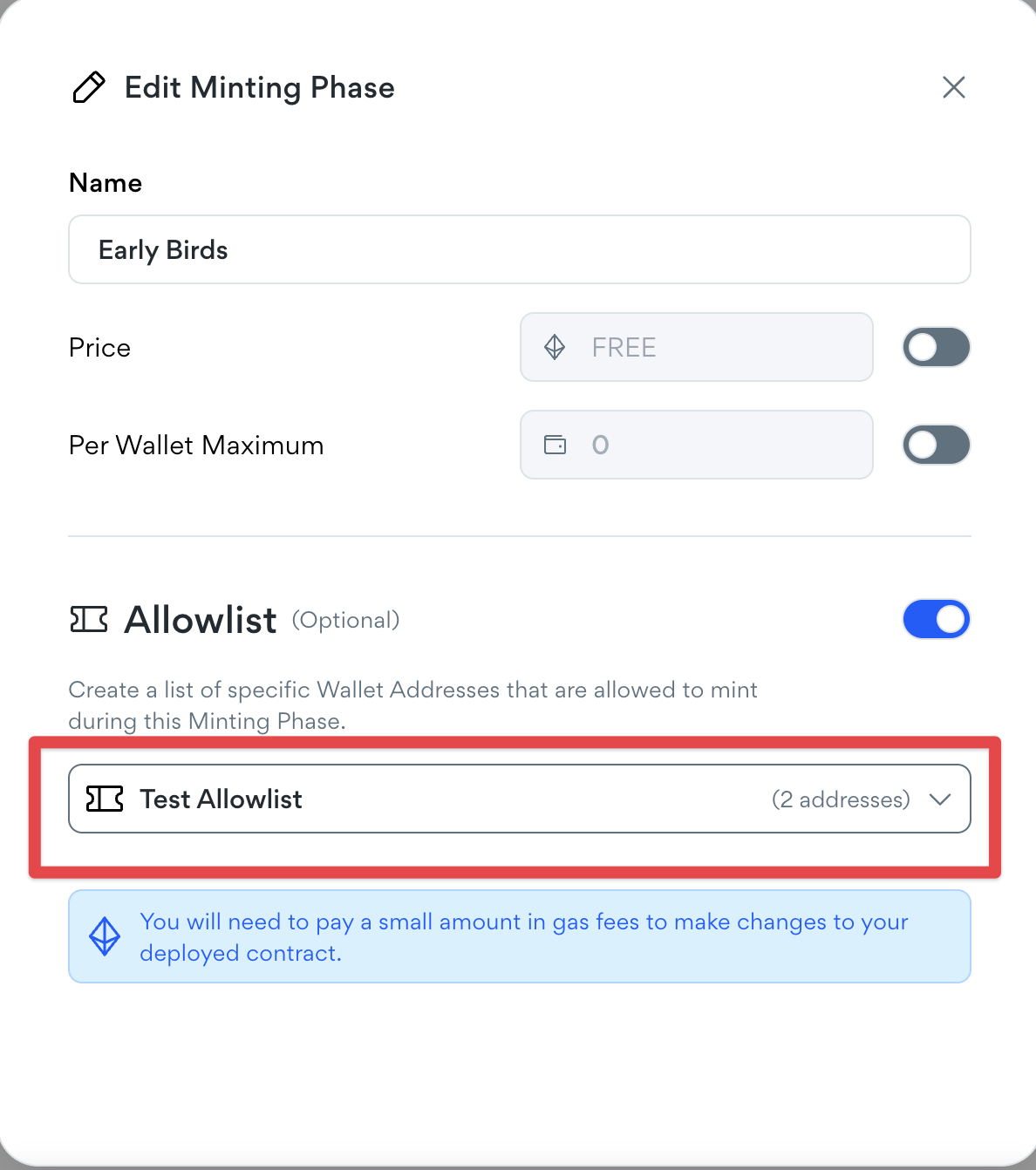 Create a completely new allowlist (either by importing a CSV, or entering wallets manually).
