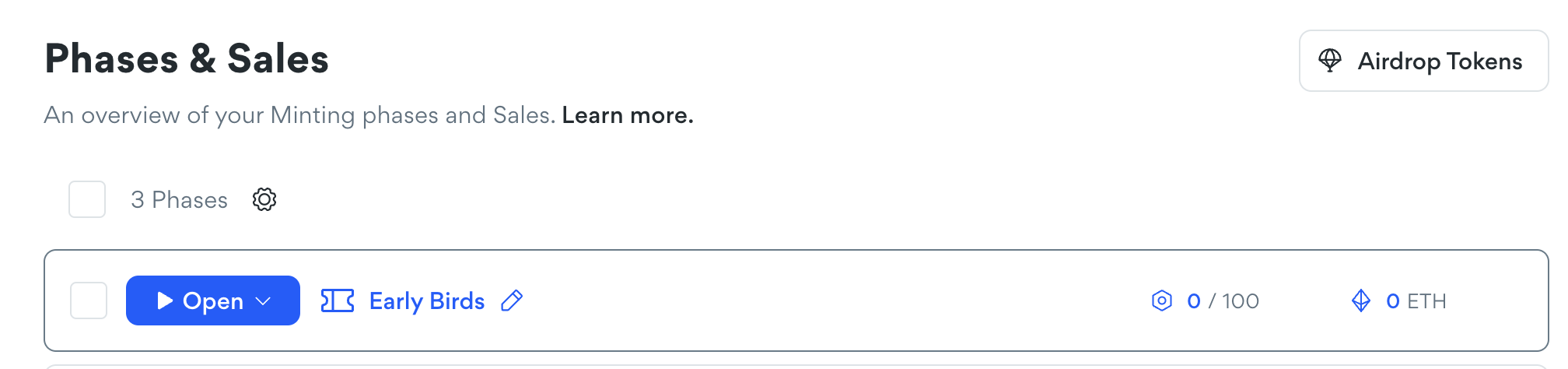 To start, navigate to your Bueno contract dashboard and hover your mouse over the phase with the allowlist you intend to update. Click the pencil icon next to the phase.