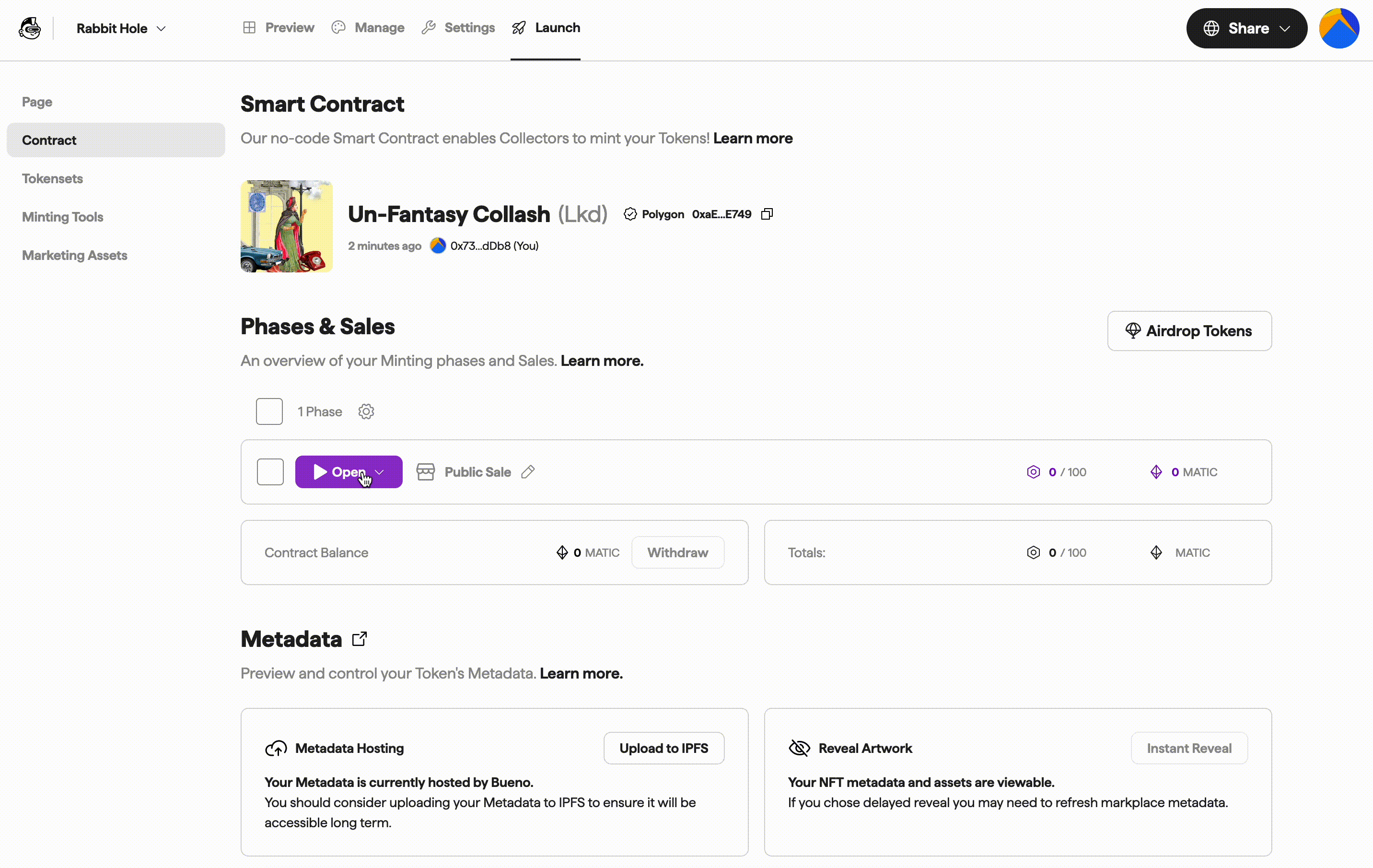 * **Prevent Further Minting:** No additional tokens can be minted after permanently closing your sale. This caps your collection.